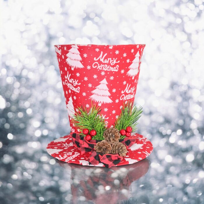 Sombrero Navidad Tela Estampada Roja C/Luz Led