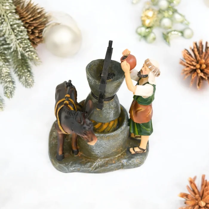 Aldeano En Pozo C/Burro 15Cm