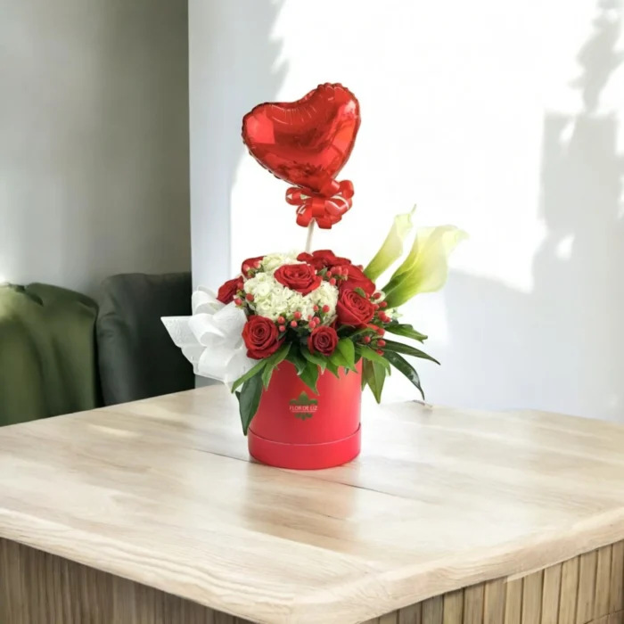 $135,000Arreglo elaborado con Rosas rojas, Hortensias blancas y toques de Hiperico, presentado en una elegante caja y acompañado de globo y cartuchos decorativos. Un diseño… - (0 review)