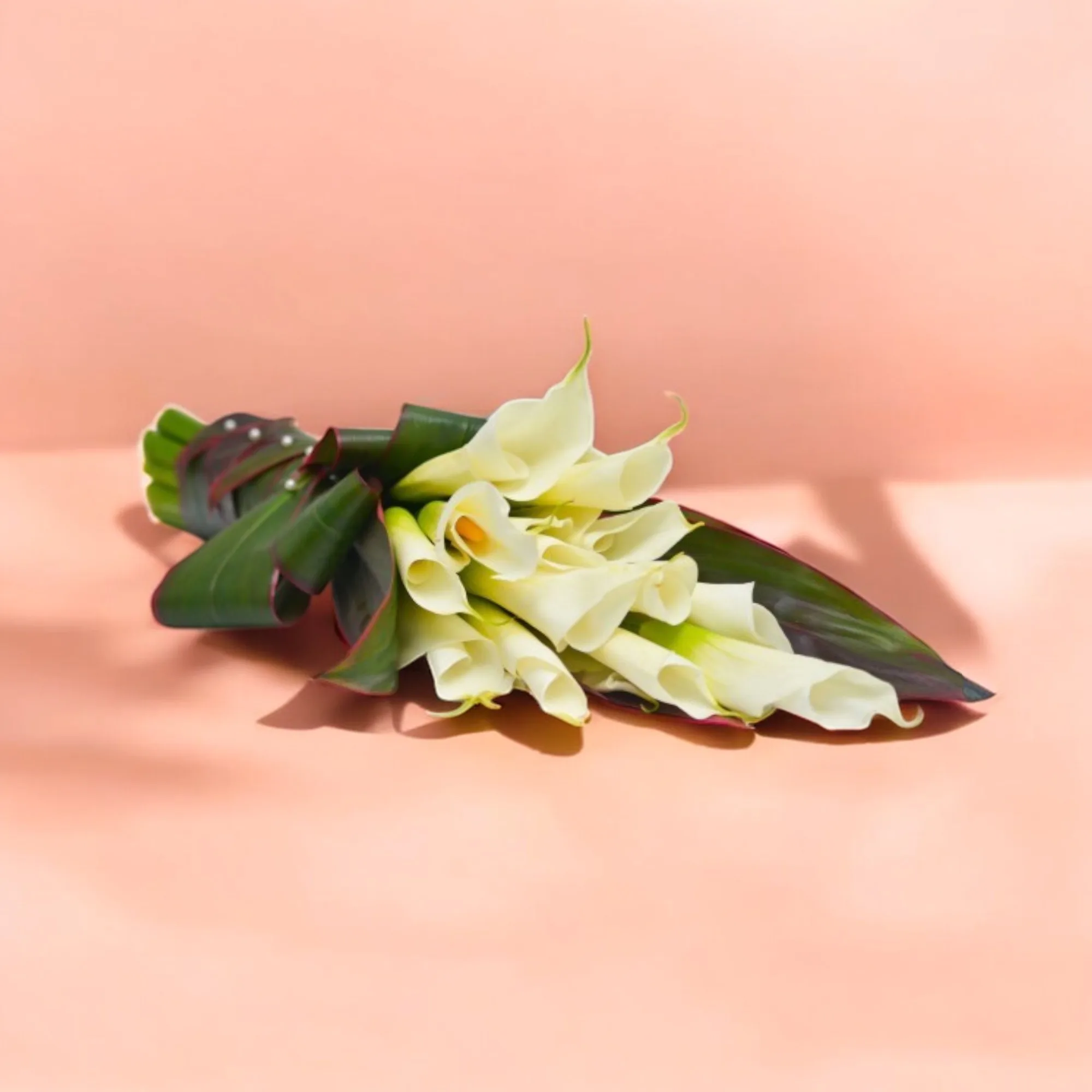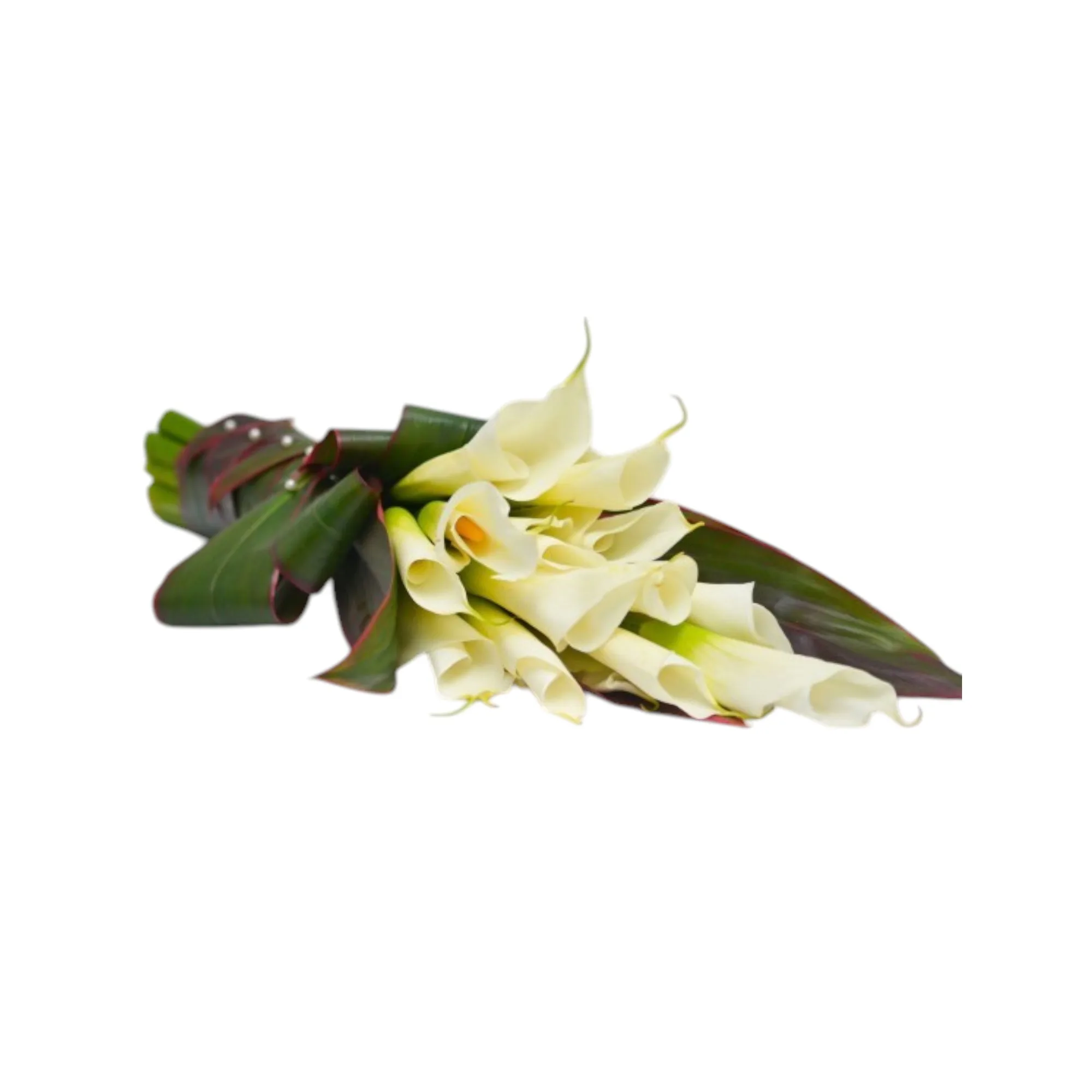 Hermoso bouquet en cartuchos y hojas de carey con detalles perlados.