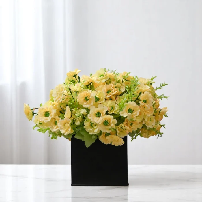 Margarita artificial con medidas de 32 cm de altura, perfecta para añadir un toque fresco y atemporal a cualquier espacio.