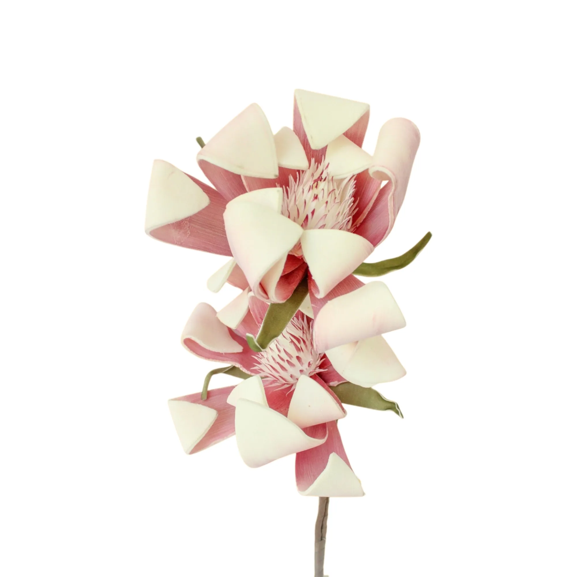 Flor de foami en color rosado con medidas de 116 cm de altura, con un diseño detallado que realza su belleza, ideal para composiciones decorativas.