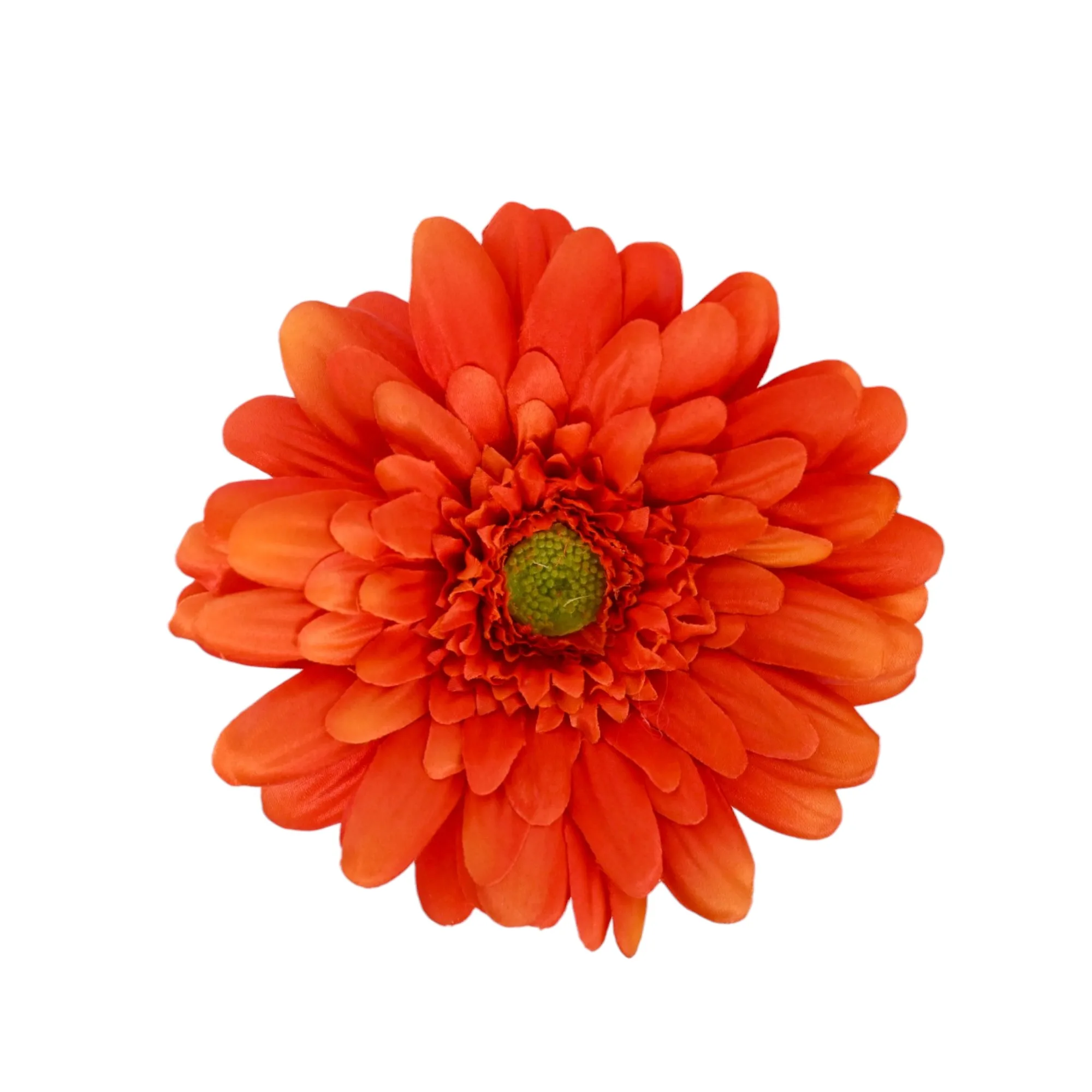 Gerbera artificial de color naranja con acabado natural y tallo flexible, con medidas de 56 cm.