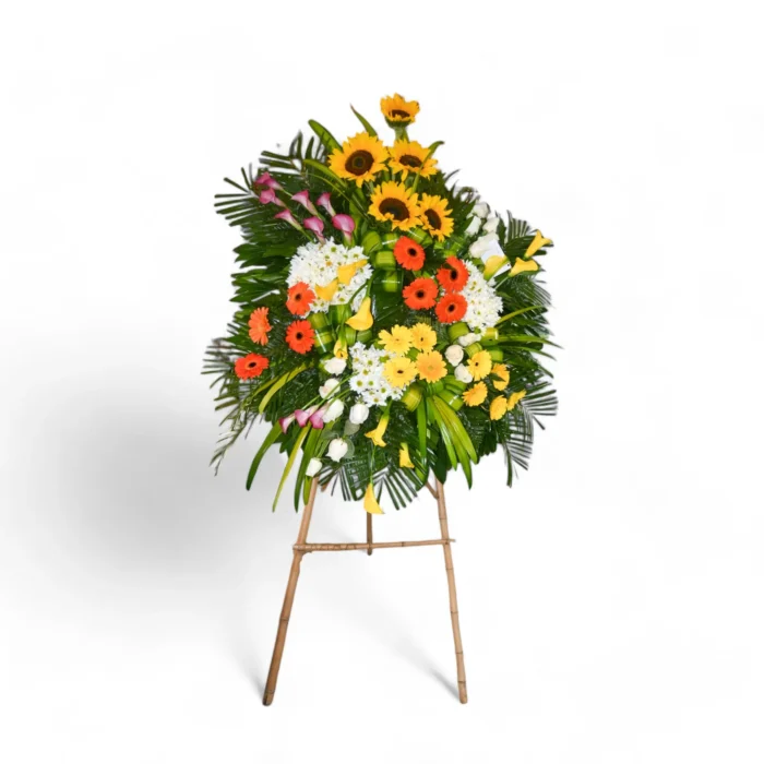 Homenaje Fúnebre Infantil flores surtidas figura tipo ángel.