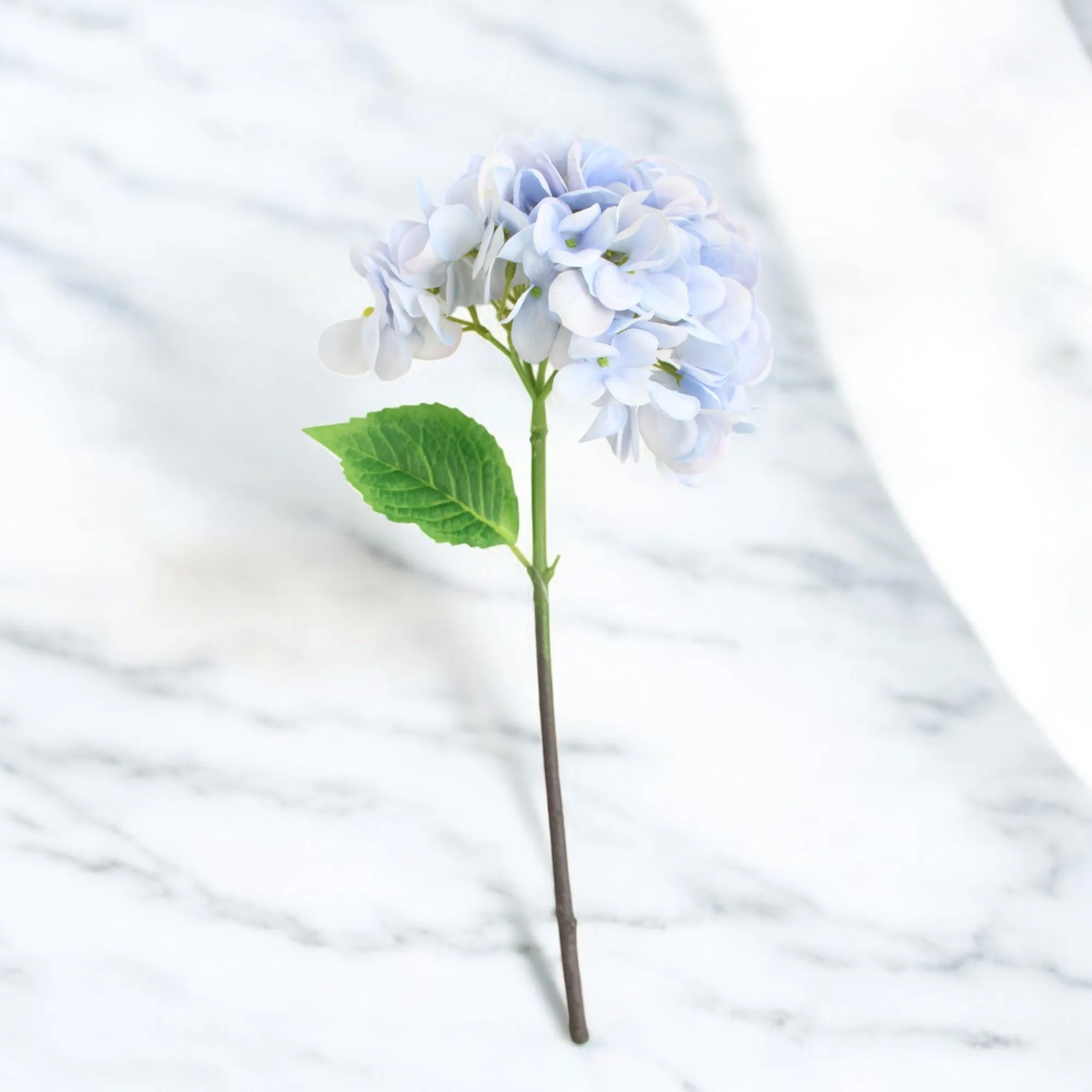 Hortensia artificial en tonos azules, con un diseño realista y elegante. Ideal para decoraciones sofisticadas y atemporales.