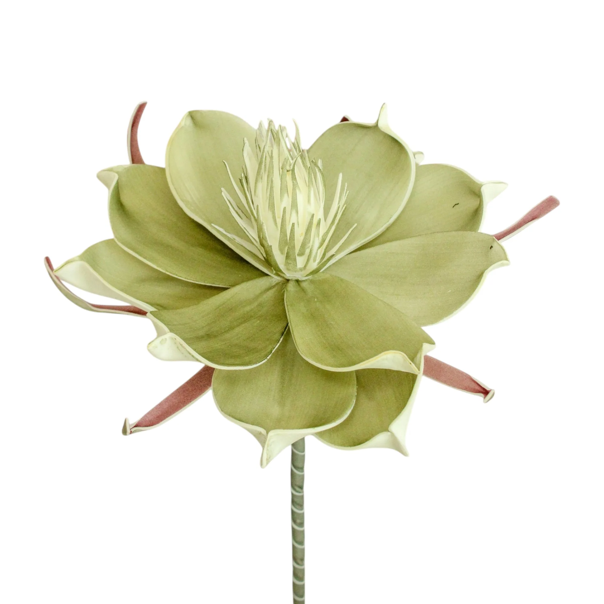Magnolia artificial de foami en tono verde, con detalles que realzan su apariencia natural.