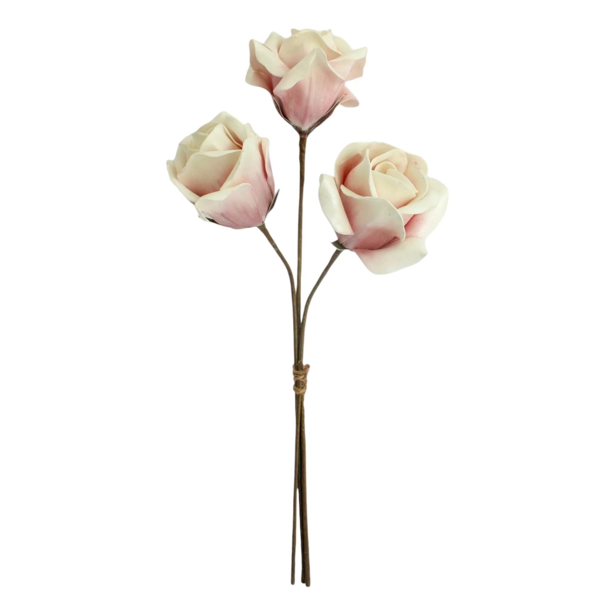 Rosas artificiales en foami con 3 flores en tonos suaves.