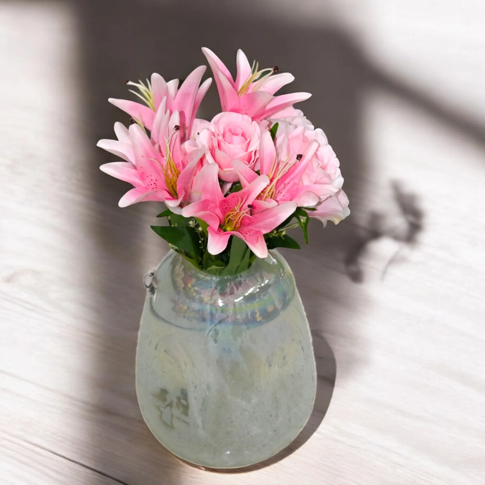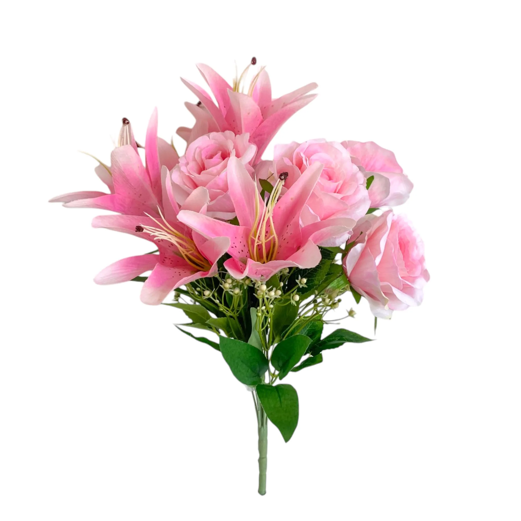Bonche de lirios y rosas artificiales de 54.61 cm en tonos rosados, con detalles realistas y una combinación armoniosa. Ideal para realzar cualquier espacio con un toque sofisticado y elegante.