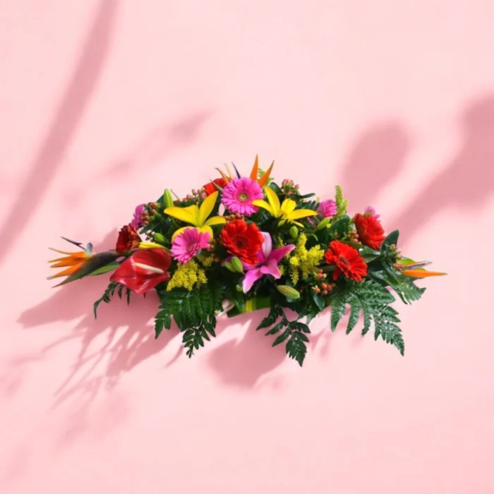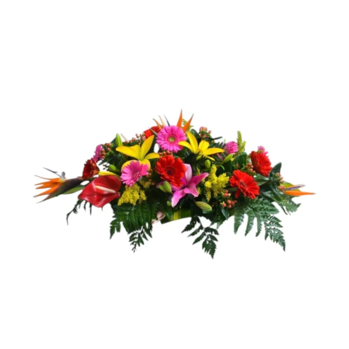 $180,000Centro de mesa exótico elaborado en anturios, ave de paraiso, gerberas, lirios, hipérico, aster, helecho cuero y hoja de dracena. - (0 review)
