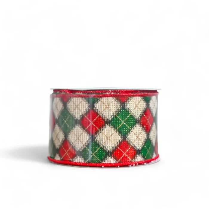 Cinta 2.5×10 Yd Print/Glitter Check/Cotton Ivory /Red/Eme