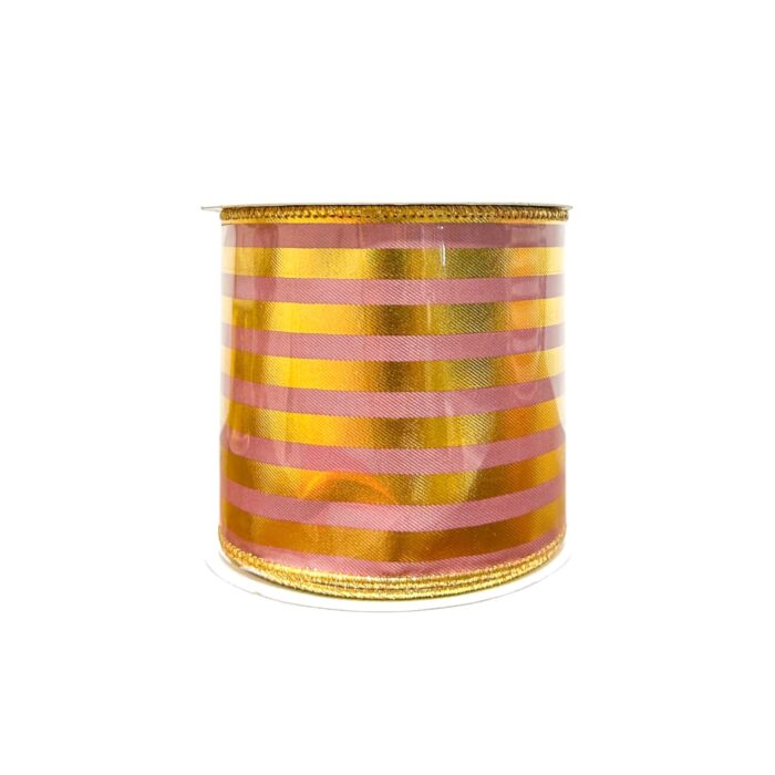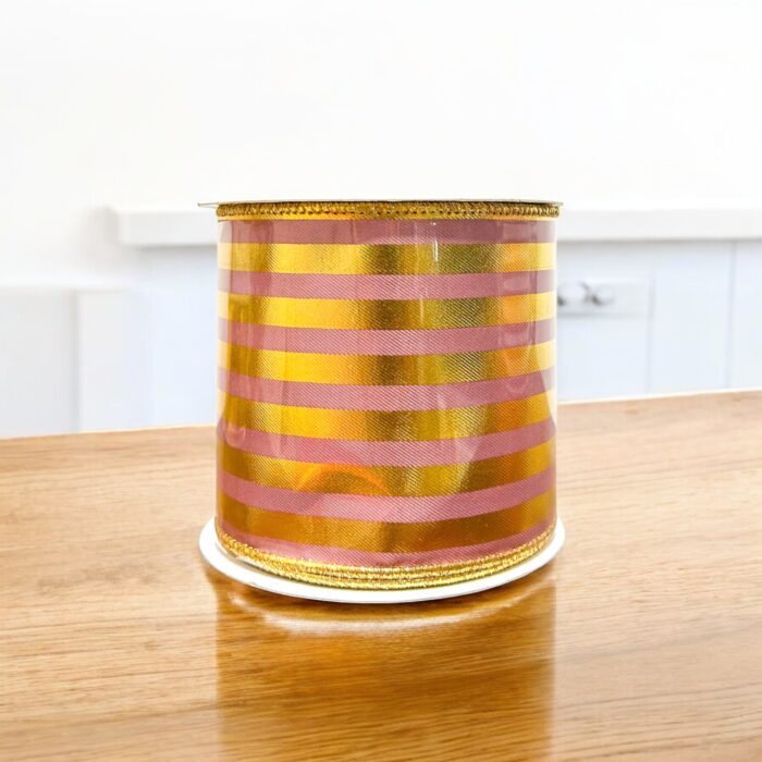 Cinta 4 X 10 Yd Metalic Vertical Stripes Dusty Rose/Gold