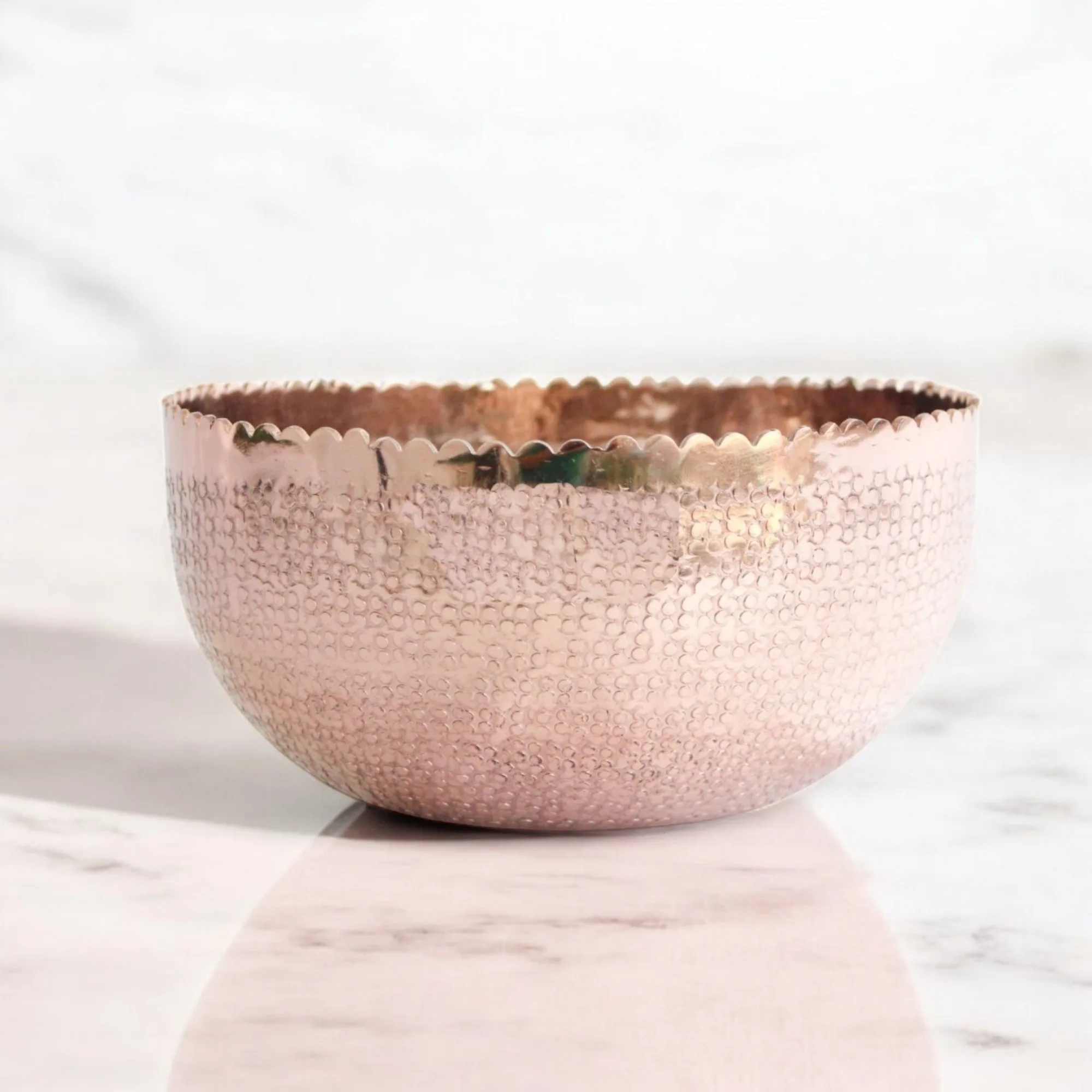 Cuenco decorativo en color oro rosa.