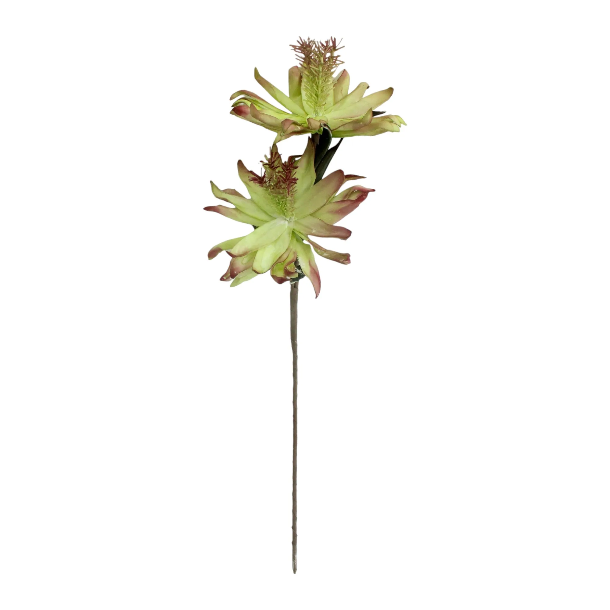 Flor artificial de foami x2 de color verde con morado con una altura de 96cm, con detalles que realzan su apariencia natural.