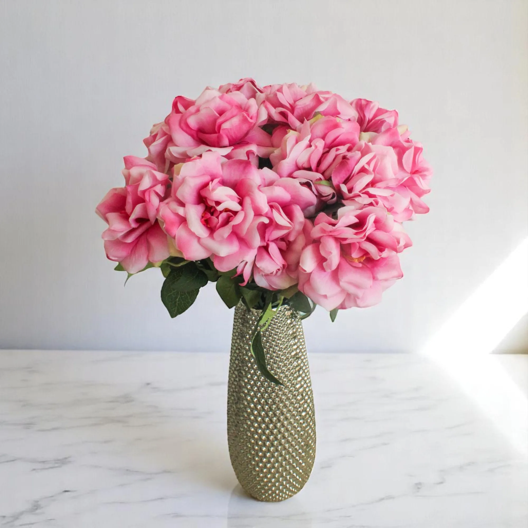 Rosa artificial de color rosado, de aspecto realista y pétalos delicadamente diseñados para un toque de elegancia y frescura.*Valor por unidad.